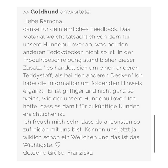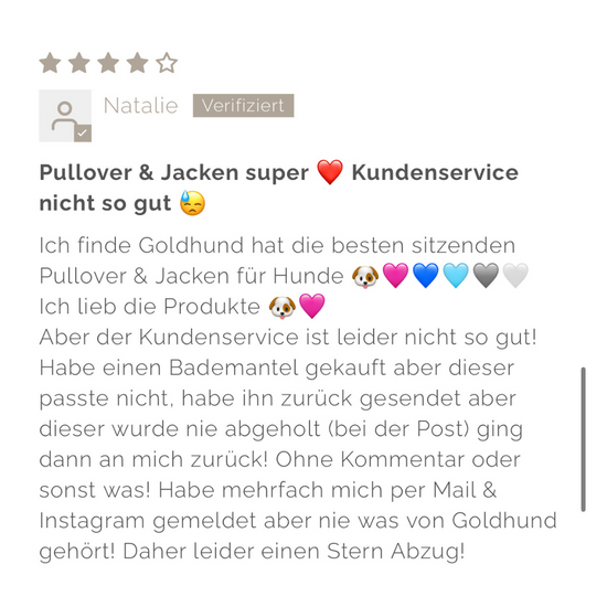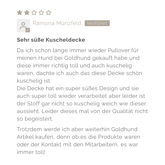 Du findest unter jedem Produkt die Möglichkeit eine Bewertung abzugeben und damit anderen Hundemenschen zu helfen.