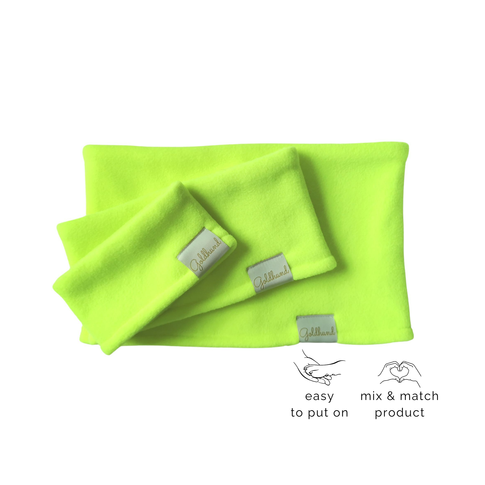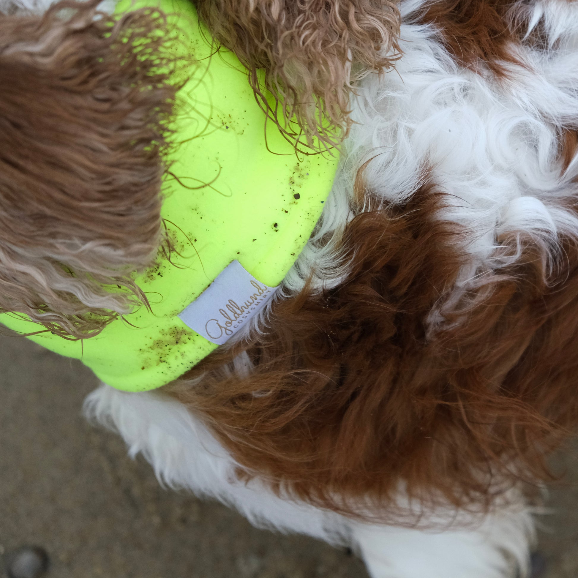 Neongelb ist nicht nur ein Trend, sondern schafft Sicherheit durch Sichtbarkeit für deinen Hund. Es passt besonders gut zu den CosyShirts stay warm in beige, oatmeal, schwarz sowie zu den CosyShells light und warm.